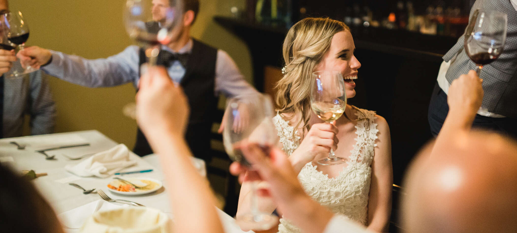 Web Cocktail tables are the perfect height for your ceremony.